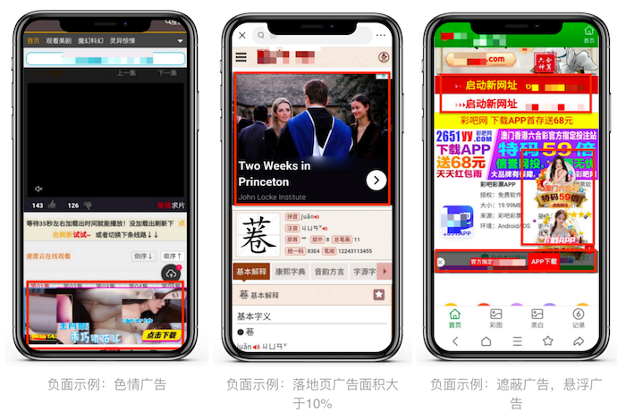 ① 在落地頁的任何位置都不允許放置懸浮廣告、彈窗廣告、遮屏廣告、閃動廣告、輪播廣告等廣告形式,不允許遮擋頁面主體內(nèi)容及功能,避免干擾用戶正常的瀏覽體驗(yàn)和搜索需求。