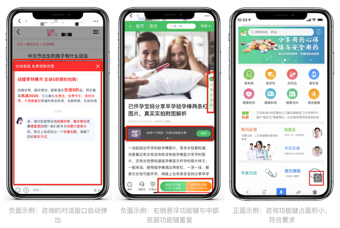 ① 功能位置必須固定不可抖動或閃爍,與頁面其他內(nèi)容模塊(如廣告)要有一定間距,不可重疊,避免用戶誤操作。